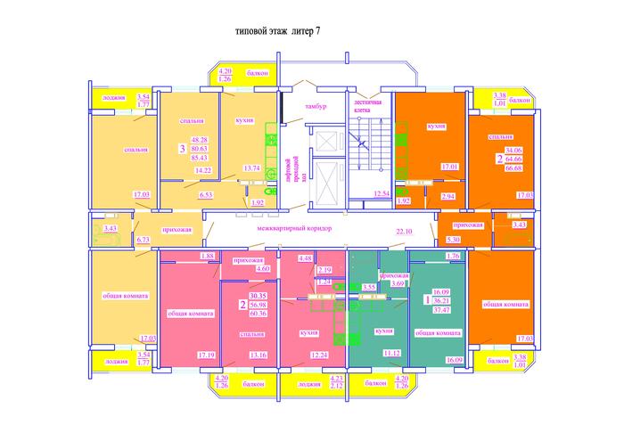 48 шт. - общая площадь квартир – 37,47 м2, жилая площадь – 16,09 м2