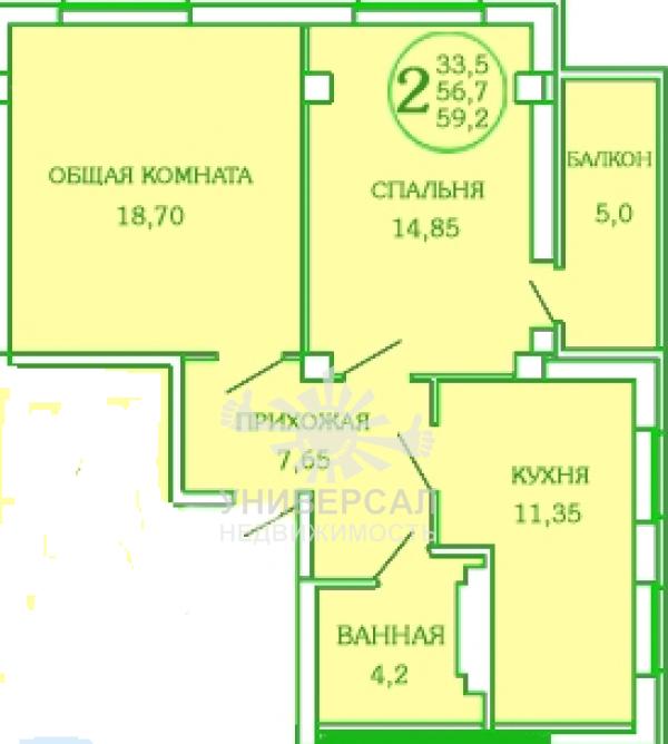 2-к квартира 55 м2