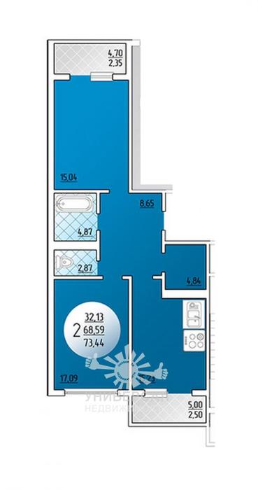 2-к квартира 55 м2