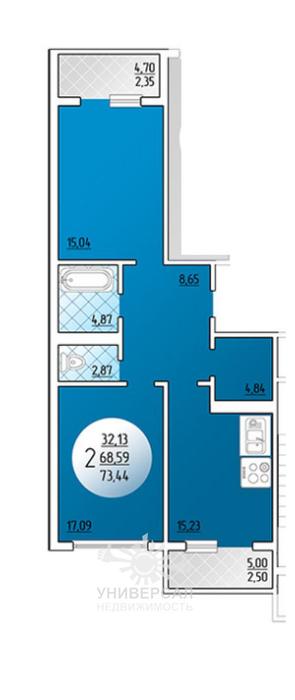 2-к квартира 54 м2