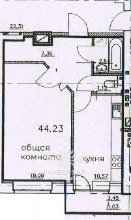 1-к квартира 45 м2
