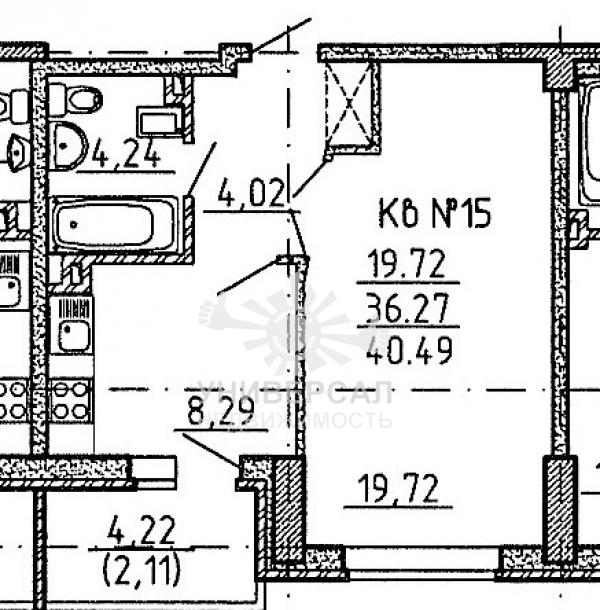 2-к квартира 46 м2