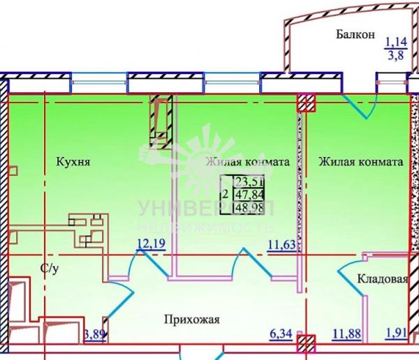 2-к квартира 46 м2