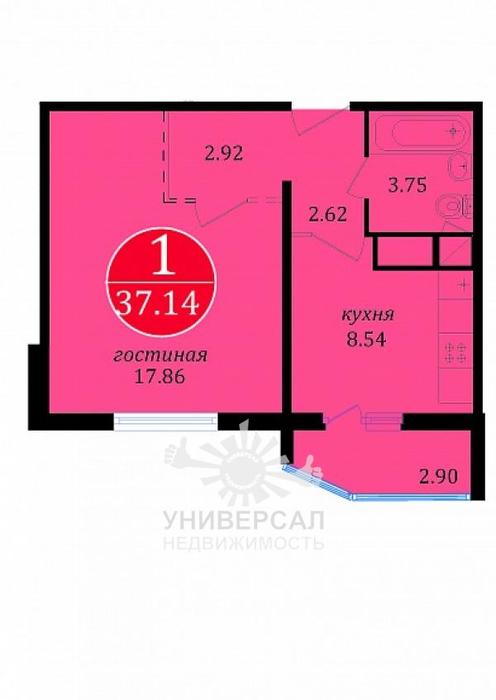 1-к квартира 37 м2