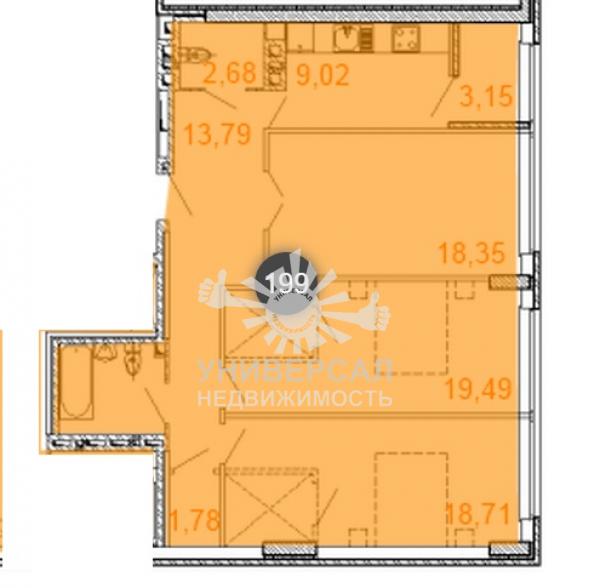 - Общая площадь: 57.0 м²