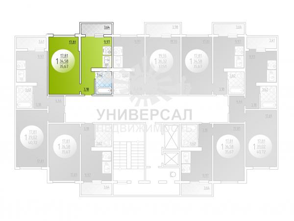 - Общая площадь: 41.0 м²