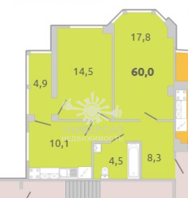 - Общая площадь: 60.0 м²