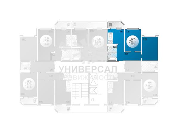 - Общая площадь: 53.0 м²