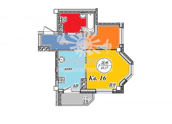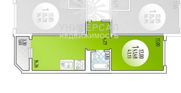 - Общая площадь: 43.0 м²
