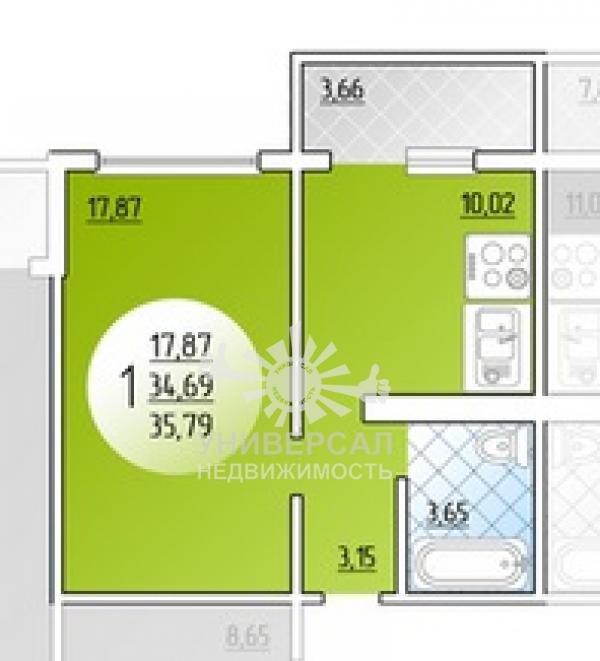 - Общая площадь: 36.0 м²