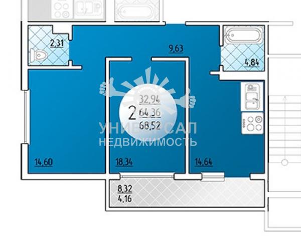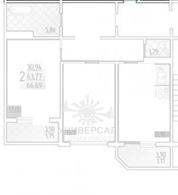 - Общая площадь: 69.0 м²