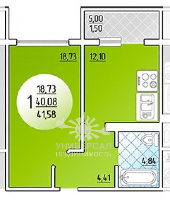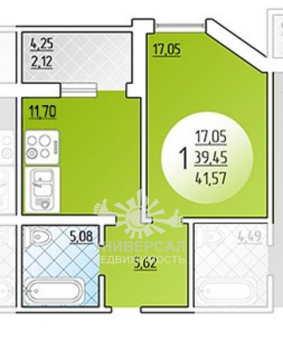 - Общая площадь: 42.0 м²