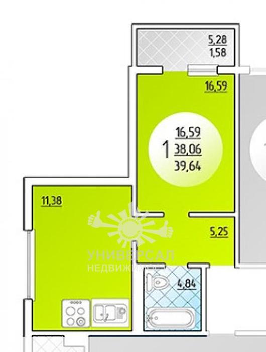 - Общая площадь: 40.0 м²