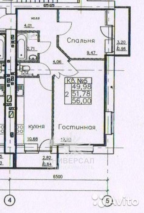 - Общая площадь: 56.0 м²