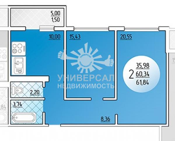 - Общая площадь: 62.0 м²