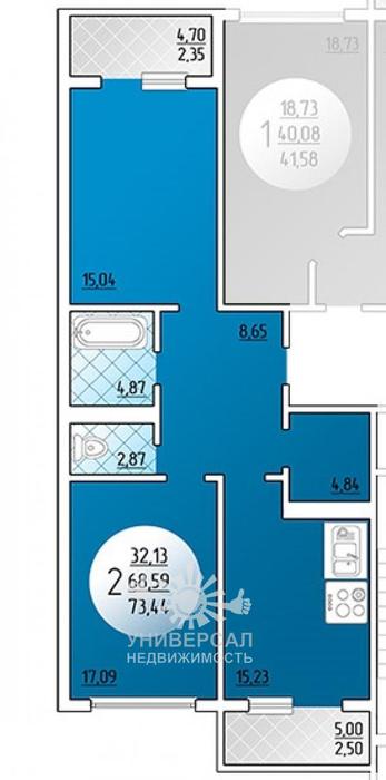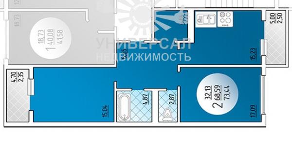- Общая площадь: 73.0 м²